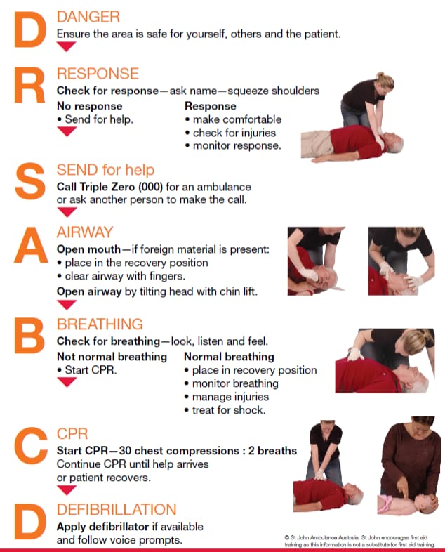 The correct life saving steps when giving first aid are: